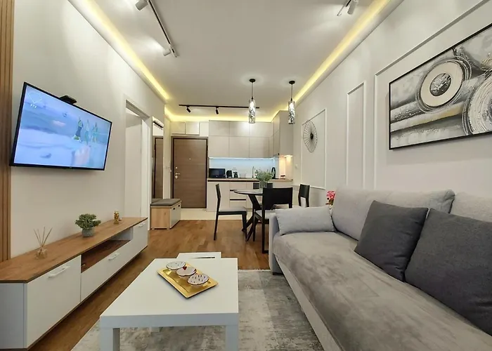 Apartman Primus Zlatibor Sa Bazenom,Spa&Wellness Centrom-Velika Recepcija 125 wyposażony jest w wyposażony aneks kuchenny z ekspresem do kawy/herbaty, lodówką i piekarnikiem. Dzięki luksusowym udogodnieniom, w tym tarasowi i prywatnemu basenowi kąpielowemu, goście mogą odpocząć i zrelaksować się. Ten apartament oferuje widok na górę z tarasu.